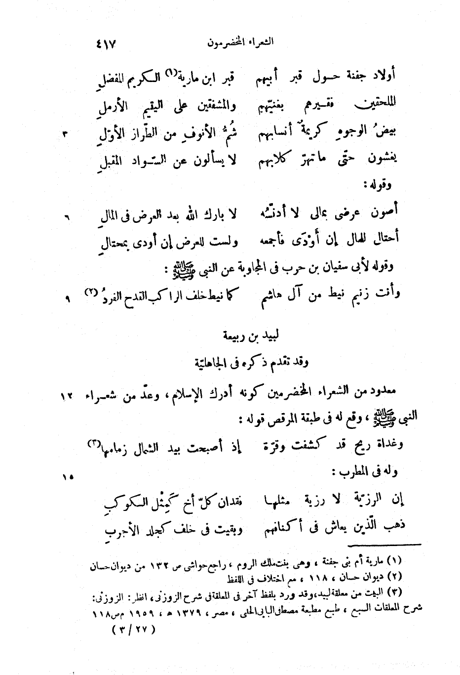 معدود من الشعراء المخضرمين كونه أدرك الإسلام، وعدّ من شعراء النبى صلّى الله عليه وسلم، وقع له فى طبقة المرقص قوله: