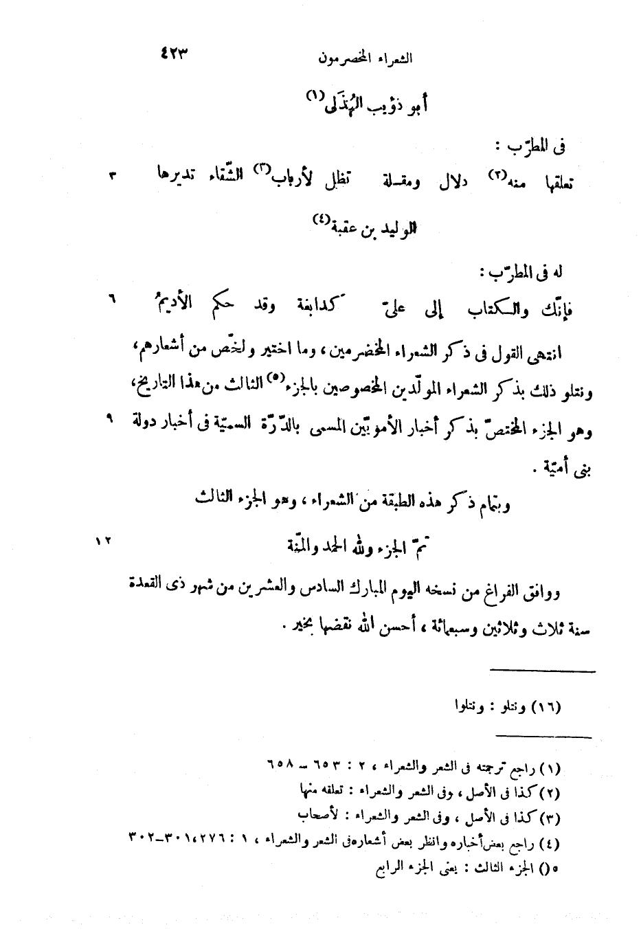 وبتمام ذكر هذه الطبقة من الشعراء، وهو الجزء الثالث