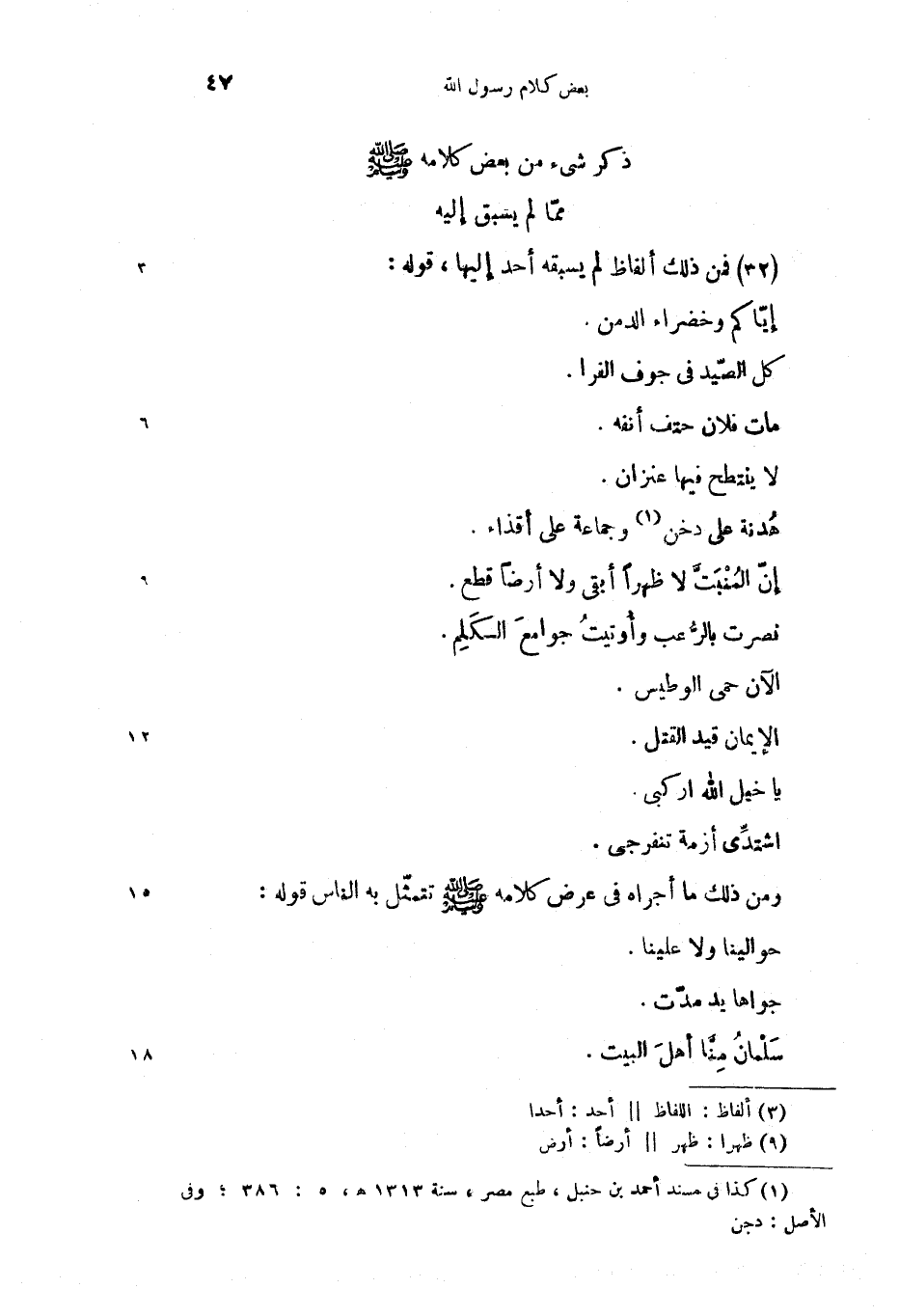 ذكر شئ من بعض كلامه صلّى الله عليه وسلم