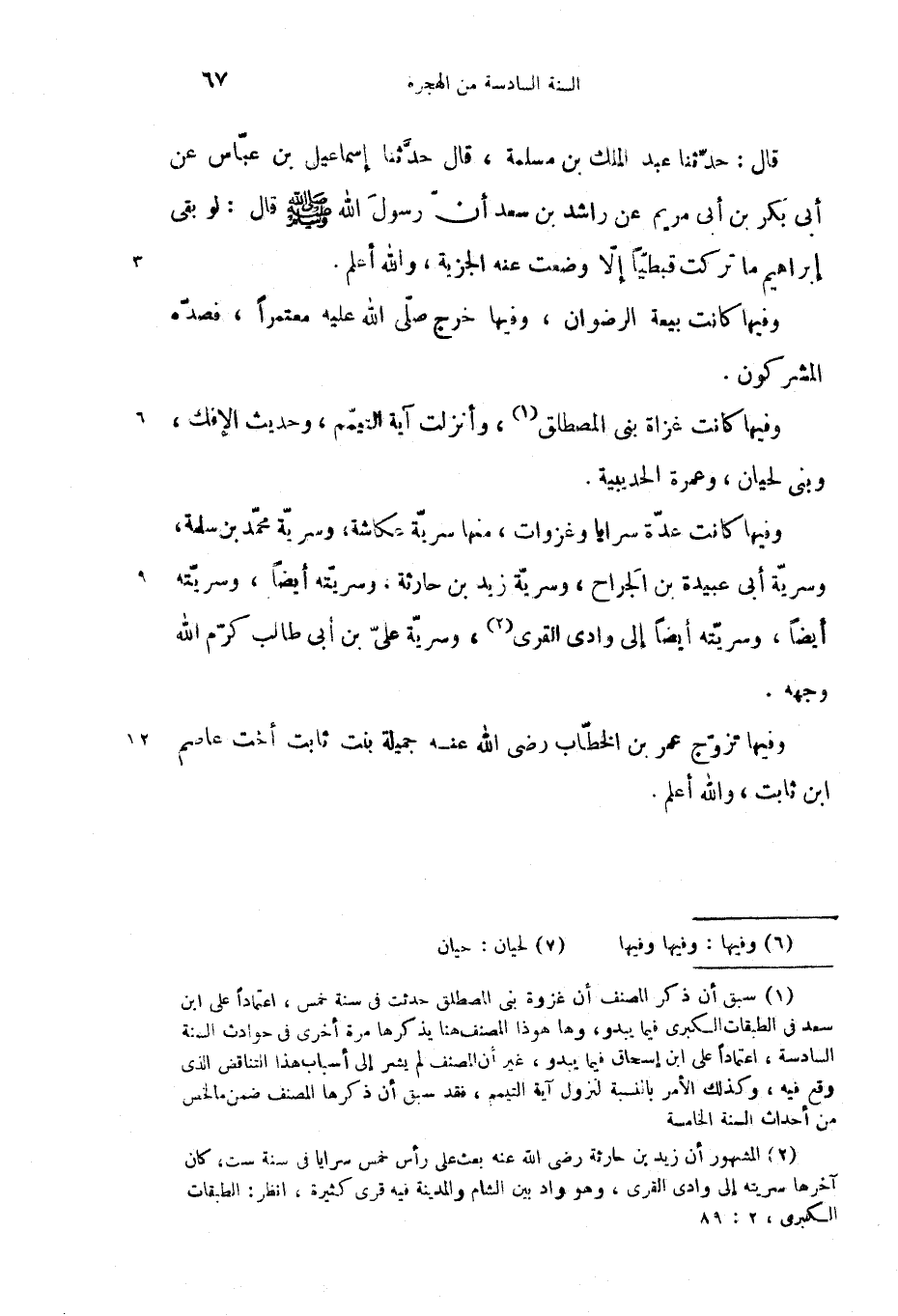 وفيها كانت عدّة سرايا وغزوات، منها سريّة عكاشة، وسريّة محمّد بن سلمة، وسريّة أبى عبيدة بن الجراح، وسريّة زيد بن حارثة، وسريّته أيضا، وسريّته أيضا، وسريّته أيضا إلى وادى القرى (2)، وسريّة علىّ بن أبى طالب كرّم الله وجهه.