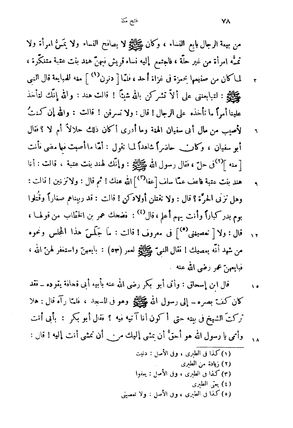 وهل تزنى الحرّة؟ قال: ولا تقتلن أولادكن! قالت: قد ربيناهم صغارا وقتلوا يوم بدر كبارا وأنت بهم أعلم، قال (4): فضحك عمر بن الخطّاب من قولها، قال: ولا [تعصيننى (5)] فى معروف! قالت: ما جلس هذا المجلس ونحوه من شهد أنّه يعصيك! فقال النبىّ صلّى الله عليه وسلم لعمر (53): بايعهنّ واستغفر لهنّ الله، فبايعهنّ عمر رضى الله عنه.