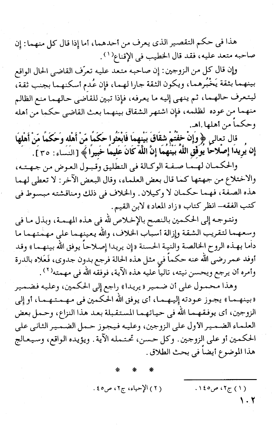 قال تعالس (وإن خفتم شقاق بينهما فابعثوا حكما فن أهله وحكما فن أهلها