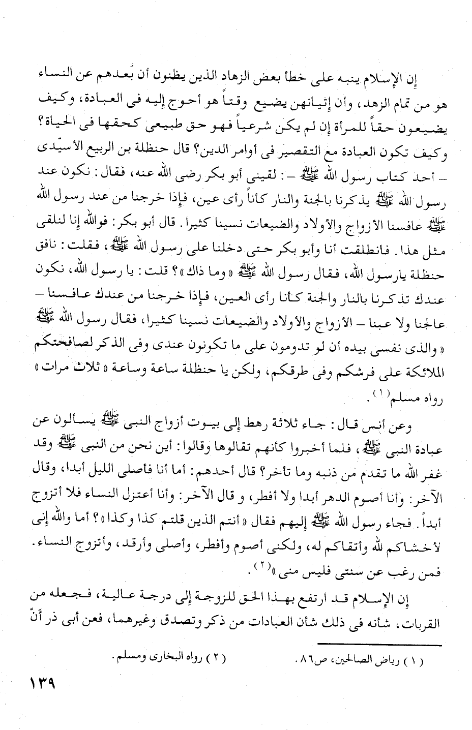 إن الإسلام ينبه على خطأ بعض الزهاد الذين يظنون أن ئعدهم عن النساء