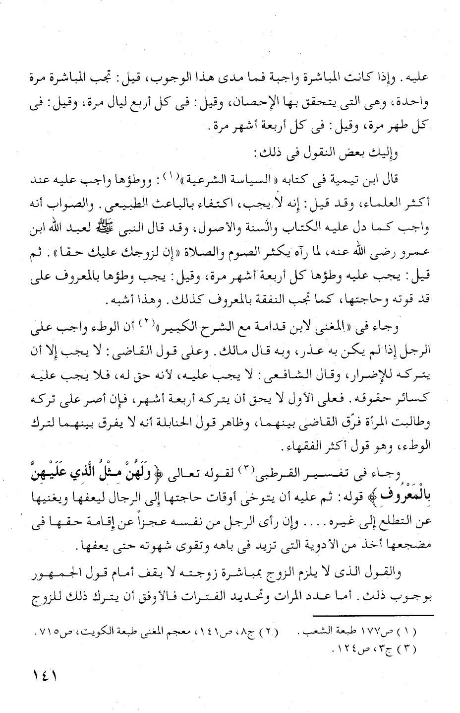 قال ابن تيمية فى كتابه " السياسة الشرعية " ا): ووطؤها واجب عليه عند