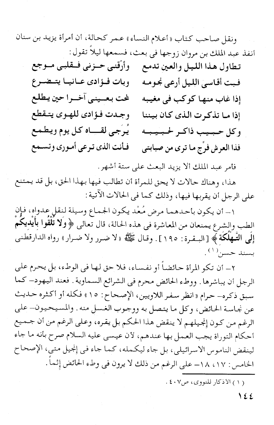 2 - آن لكو المرأة حائخما أو نفساء، فلا حق لها فع! الوطء، بل يحرم على