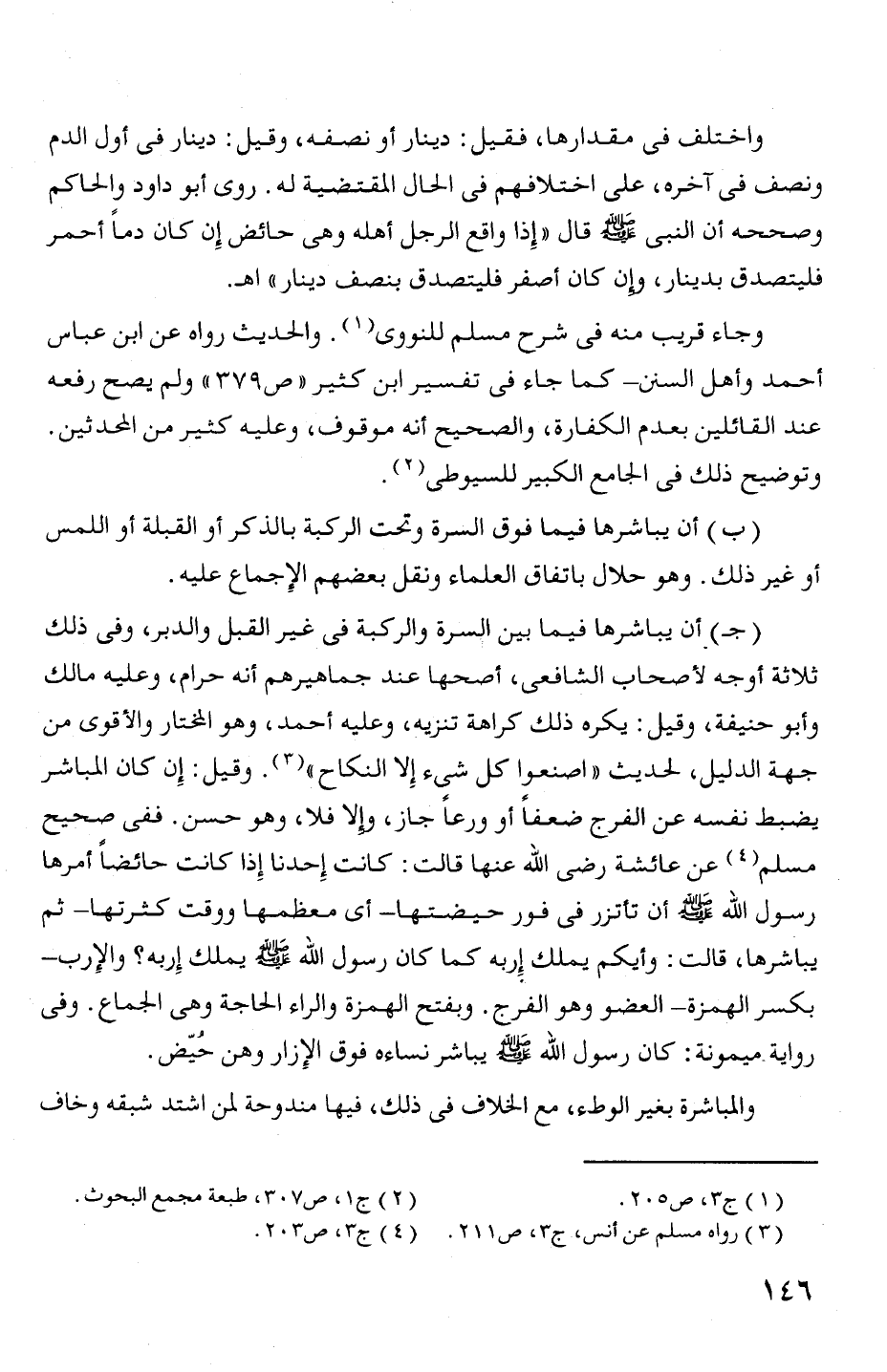 (%) أن يباشرها فيما بين السرة والركبة فى غير القبل والدبر، وفى ذلك