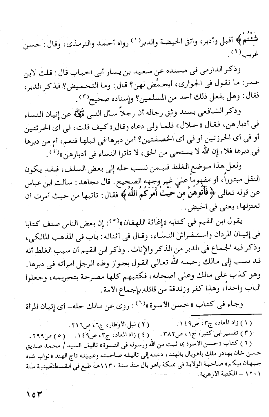 وجاء فى كتاب " حسن الا سوة " (6): روى عن مالك حله- أى إتيان المرأة