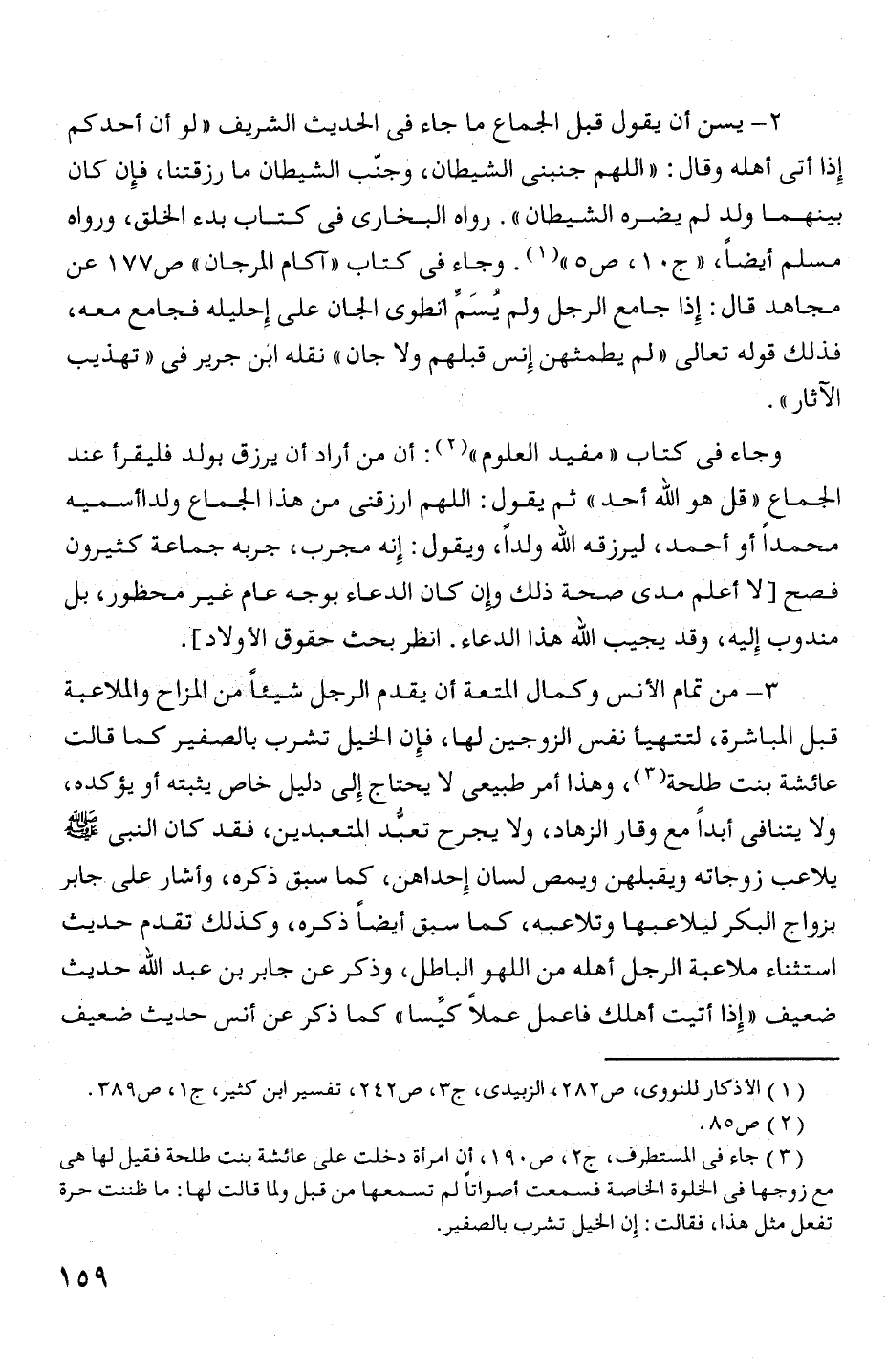 2 - يسن أن يقول قبل الجماع ما جاء فى الحديث الشريف (ا لو أن أحدكم