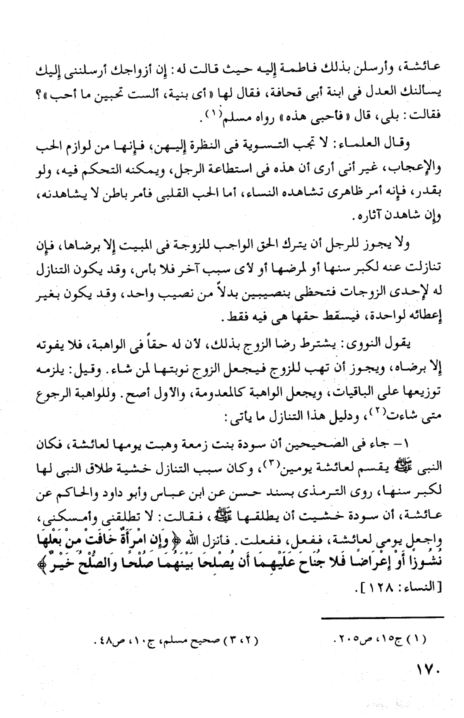 وقال العلماء: لا تجب التسوية فى النظرة إليهن، فإنها من لوازم الحب