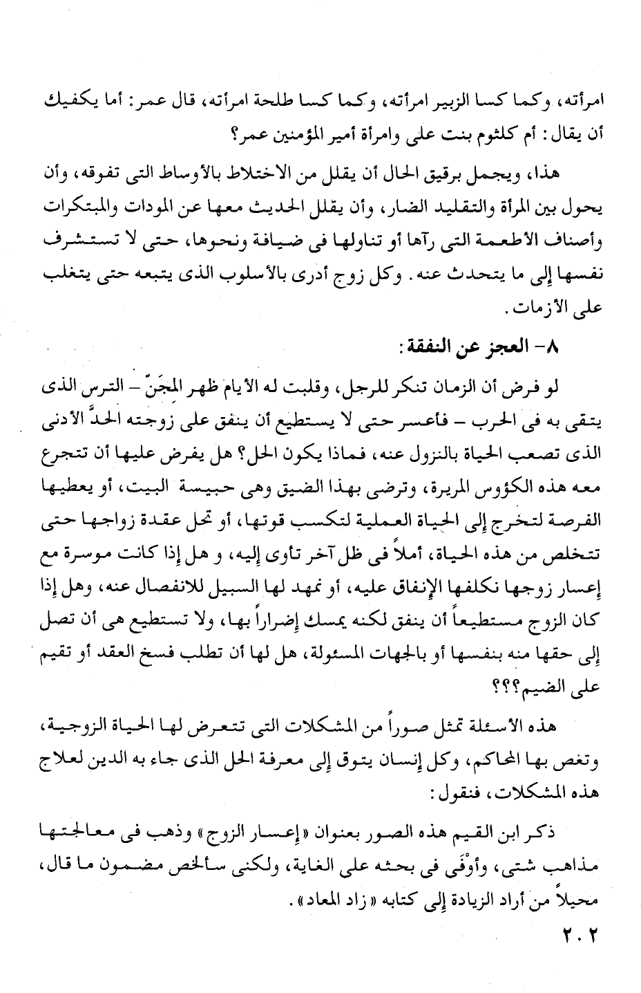 نفسها إلى ما يتحدث عنه. وكل زوج أدرى بالأ سلو ب الذى يتبعه حتى يتغلب