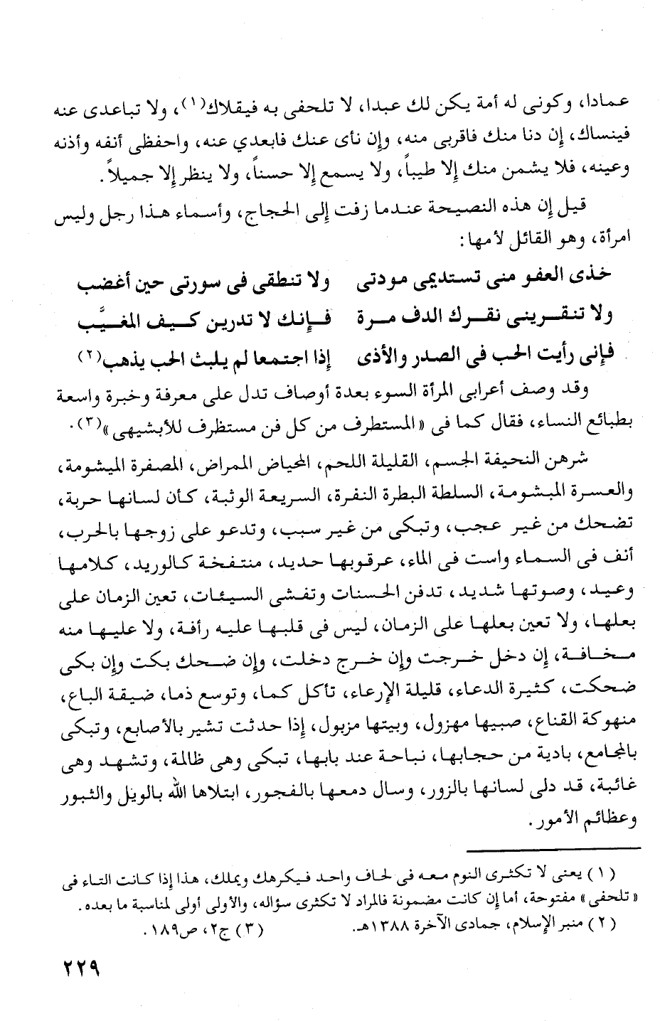 بطبائع النساء، فقال كما فى "المصتطرف من كل فن مصتظرف للابشيهى " (3).