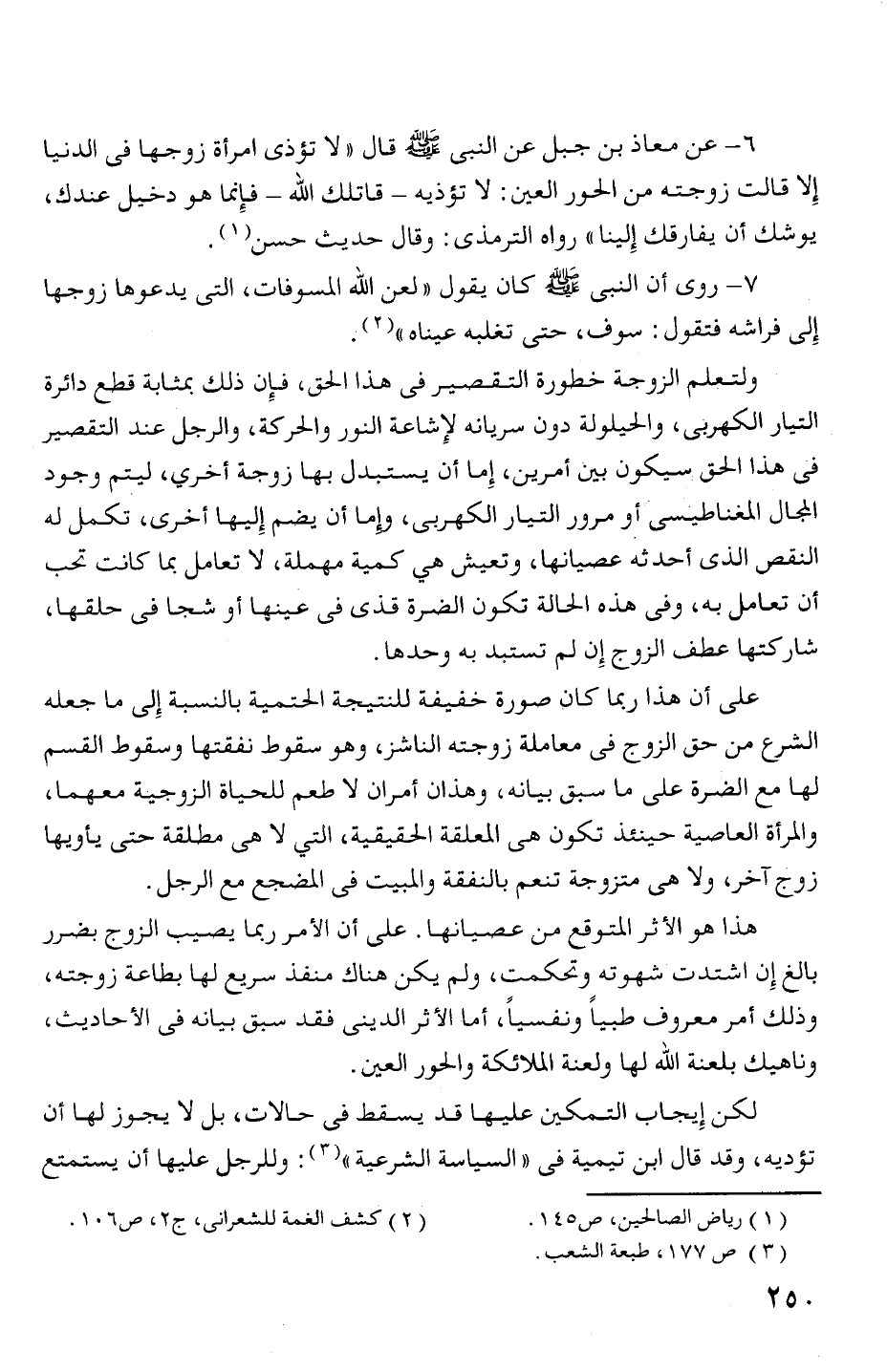 6 - عن معاذ بن جبل عن النبى لمجد. س! قال (ا لا تؤذى امرأة زوجيا فى الدنيا
