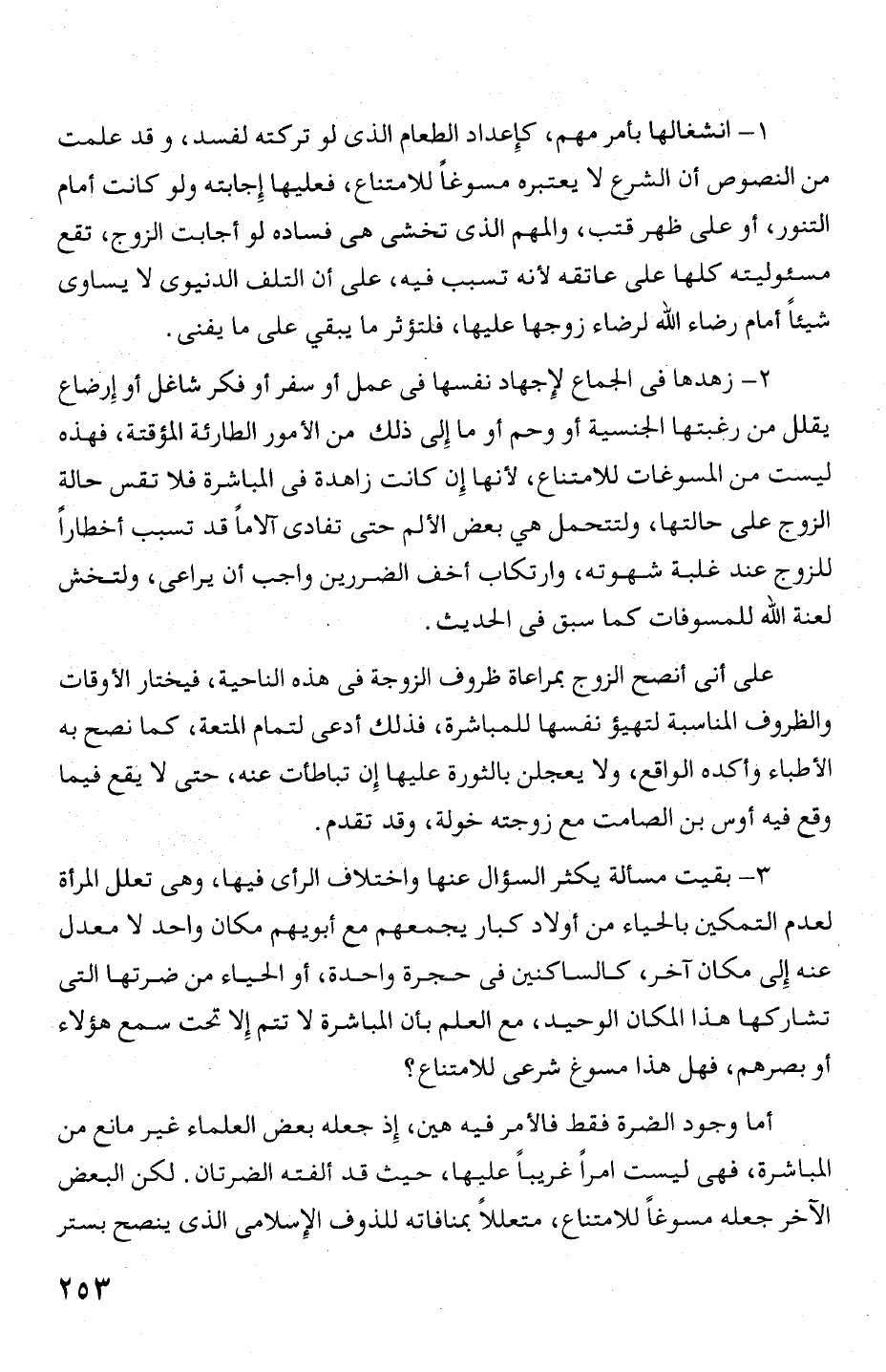 2 - زهدها فى الجماع لإجهاد نفسها فى عمل أو سفر أو فكر شاغل أو إرضاع