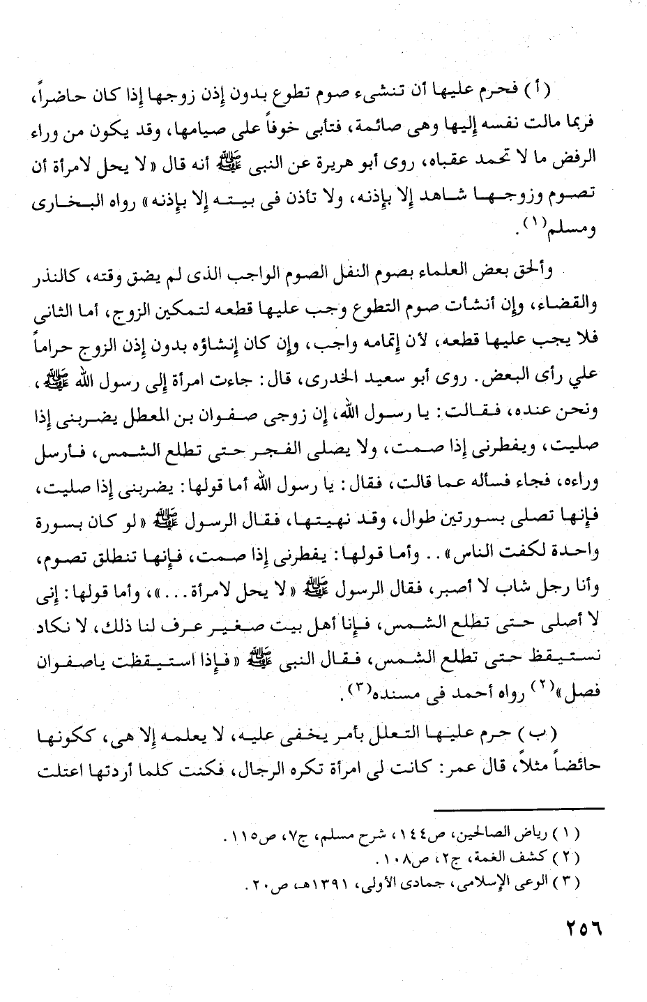 (1) فحرم عليها أن تنشىء صوم تطوع بدون إذن زوجها إذا كان حاصرا،