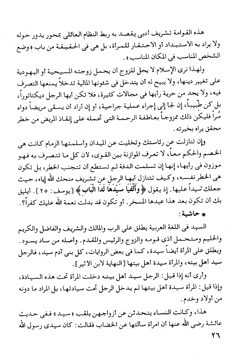 هذه القوامة تشريف أدبى يقصد به ربط النظام العائلى بمحور يدور حوله