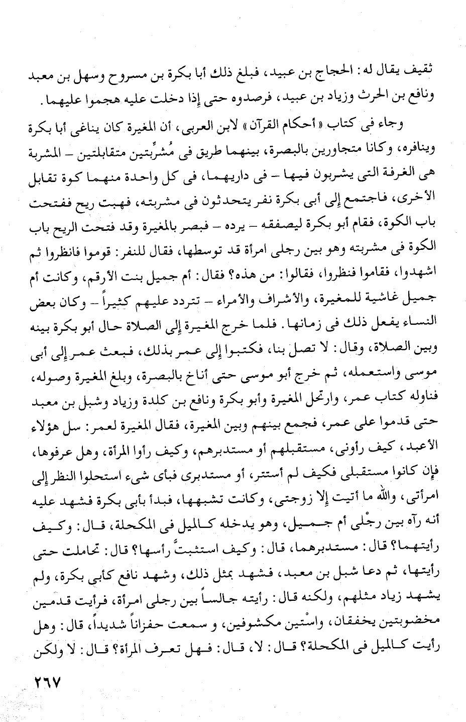 وجاء فى كتاب " أحكام القرآن " لابق العربى، أن المعيرة كان يناغى أبا بكرة