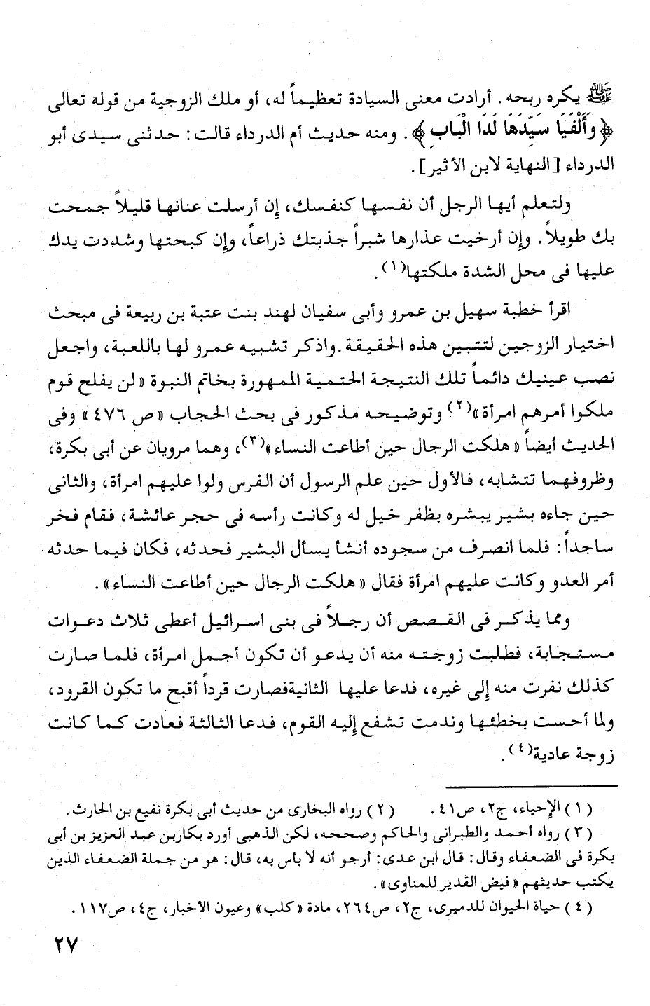 الحدلمجا أيضا " هلكت الرجال حين أطاعت النساء " (3)، وهما مرويان عن أبى بكرة،