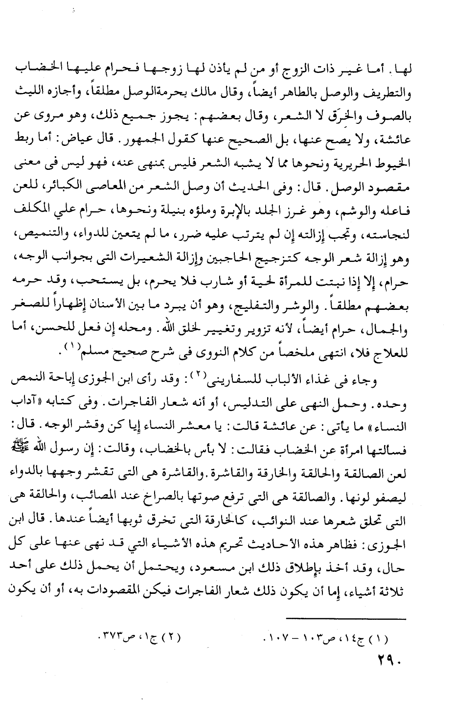 وجاء فى غذاء الأ لباب للسفارينى (2): وقد رأى ابن الجوزى إباحة النمص