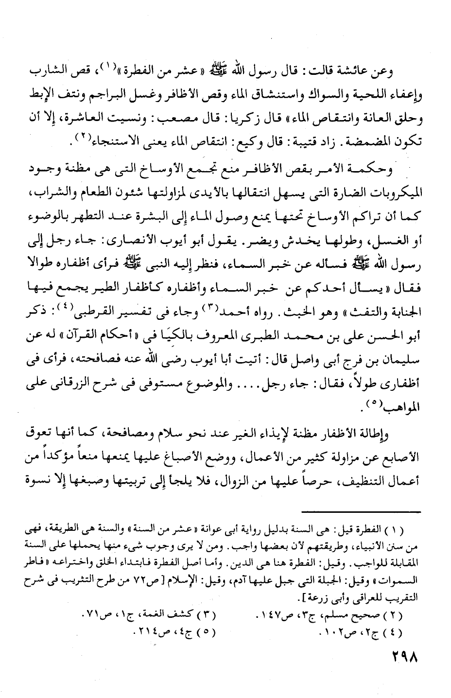 وإعفاء اللحية والسواك واستنشاق الماء و قص الأ ظافر وغسل البراجم ونتف الإبط