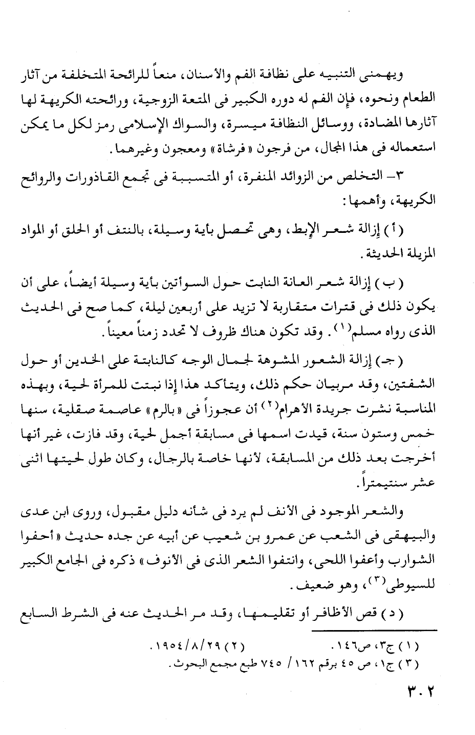 (أ) إزالة شعر الإبط، وهى تحصل بأية وسيلة، بالنتف أو الحلق أو المواد