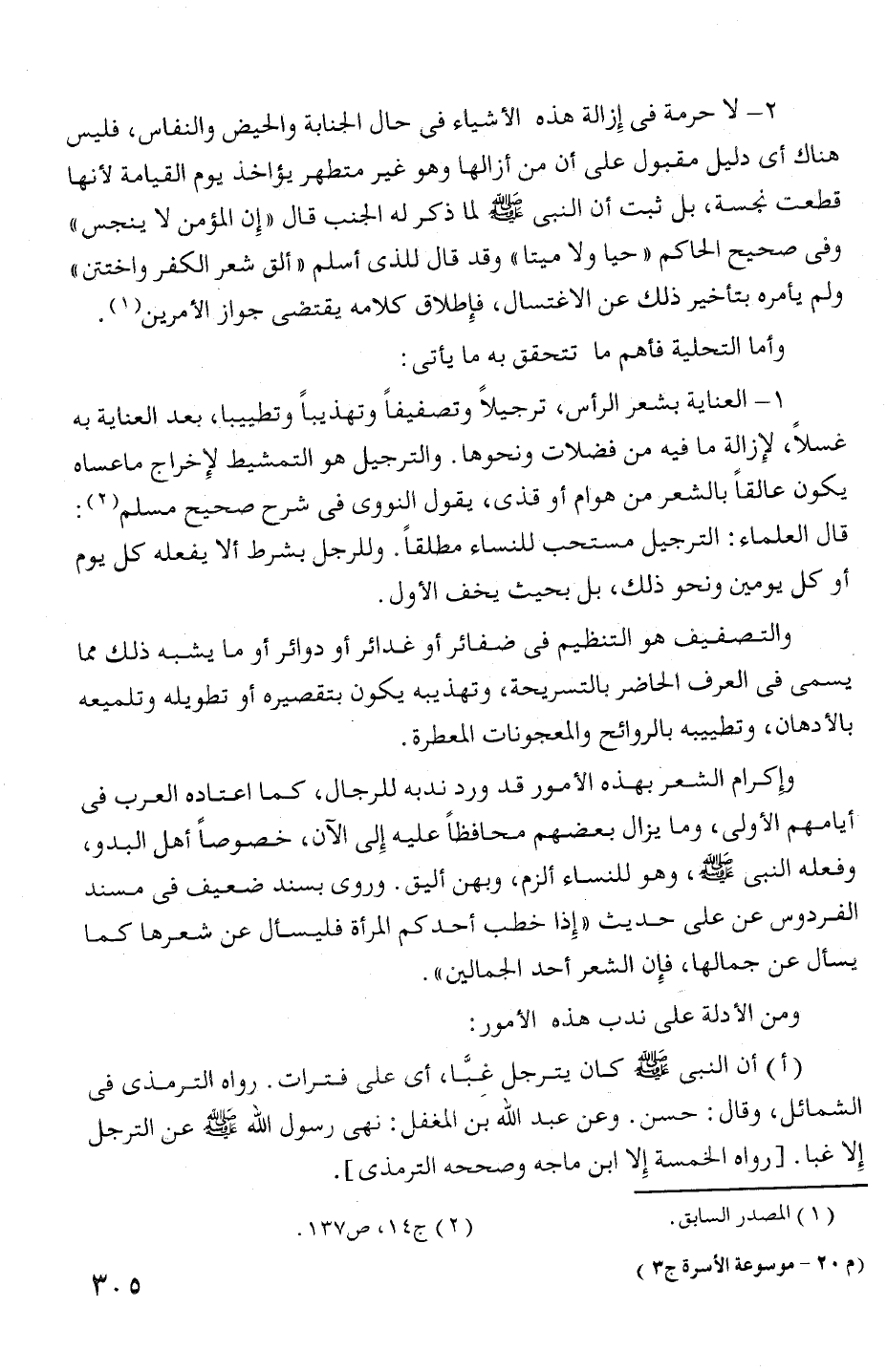 2 - لا حرهة فى إزالة هذه الأ شياء فى حا! الجنابة وا! يص والنفاس، فليس