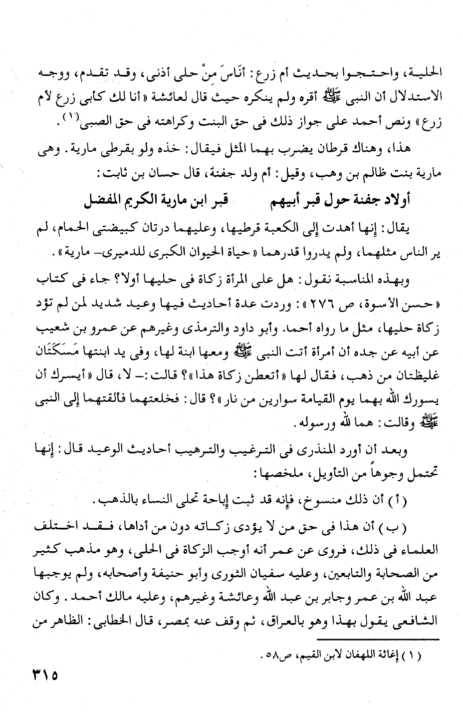 وبهذه المناسبة نقول: هل عاص المرأة زكاة فى حليها أولا؟ جاء فى كتاب