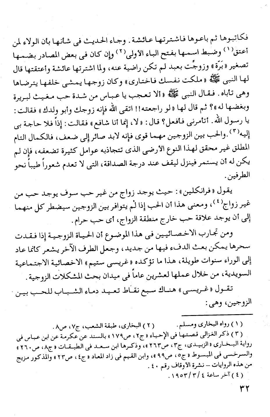 غير زواج (4)، ومعنى هذا أن الحب إذا لأ يتوافر بين الزوجين سيضطر كل منهما