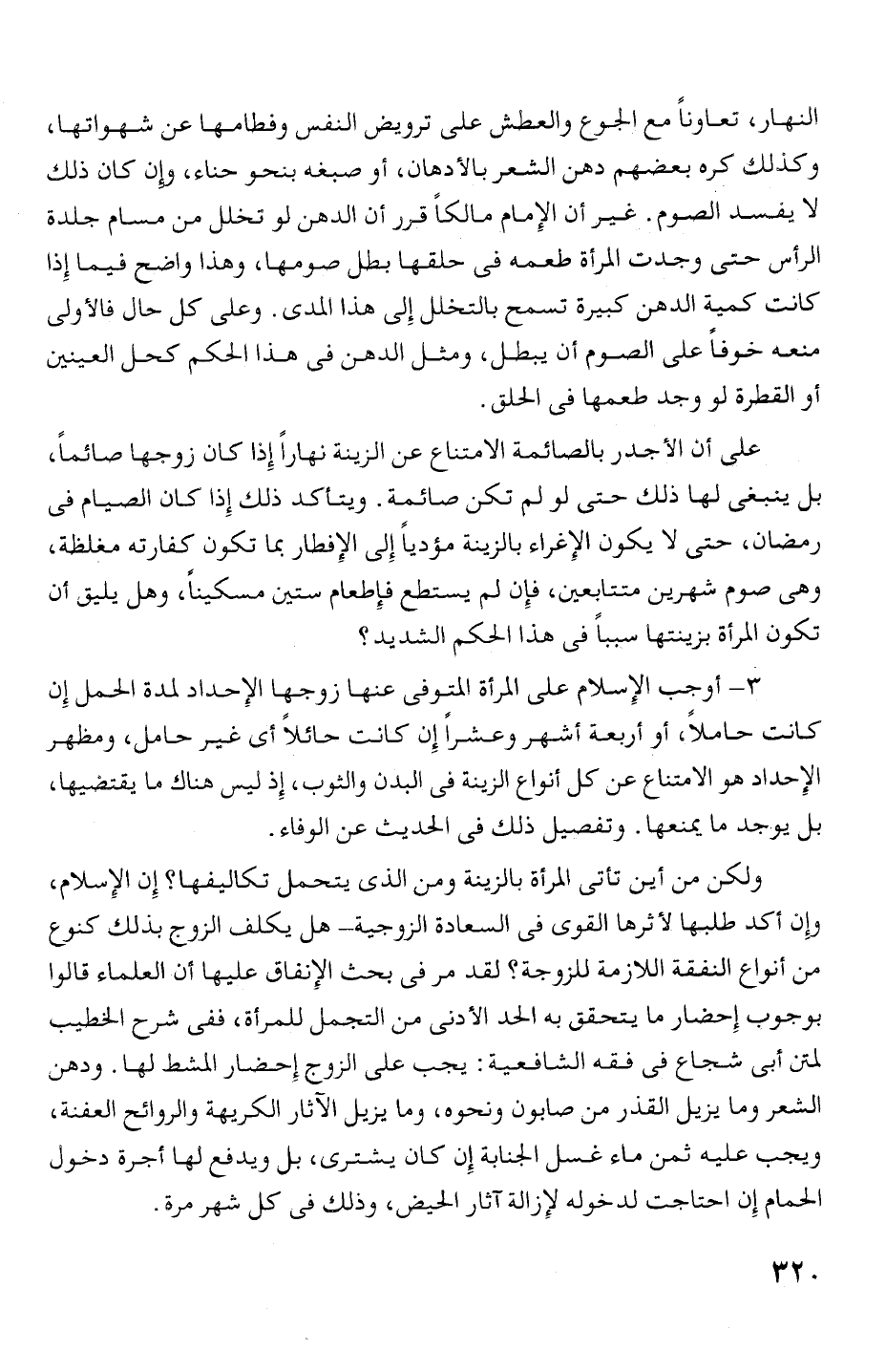 الإحداد! و الامتناع عق كل أنواع الؤينة فى البدن والثوب، إد ليحكحناك ما يقتضيها،