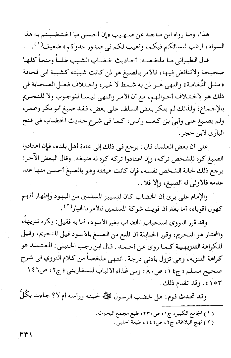 والإمام على يرى أن الخضاب كالت لتمييز المسلمين من اليهود وإطهار أنهم