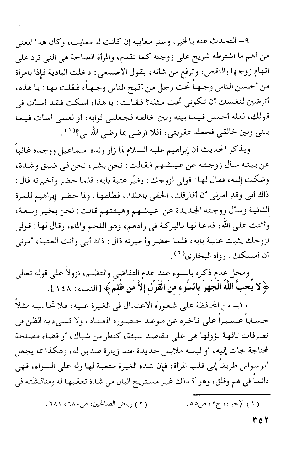 هن أهم ما اشترطه شرلح على زوجته كما تقدم، والمرأة الصالحة هى التى ترد على