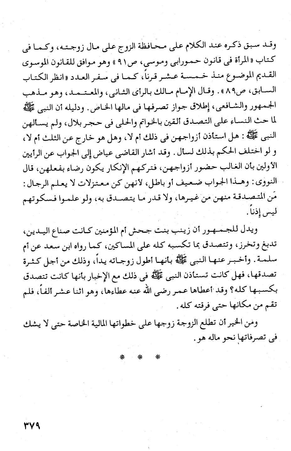 الجمهور والشالمحعى، إطلاق جواز تصمرفها فى مالها الخاص. ودليله أن النبى كلكذ