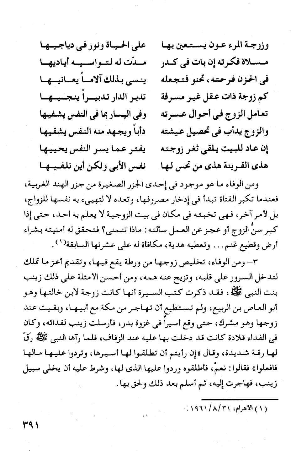 وروجة المرء عون يستعين بها على الحياة ولور لمحى دياجيها