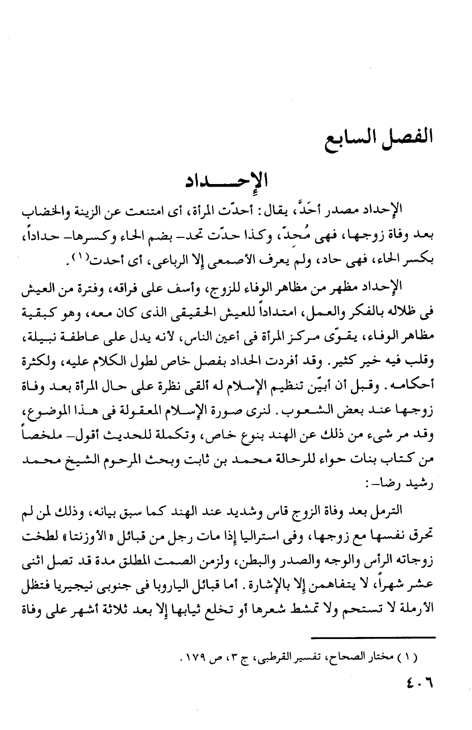 الإحداد مصدر أحد، يقال. أحذت المرأة، أى 1 متنعت عن الزينة والخضاب