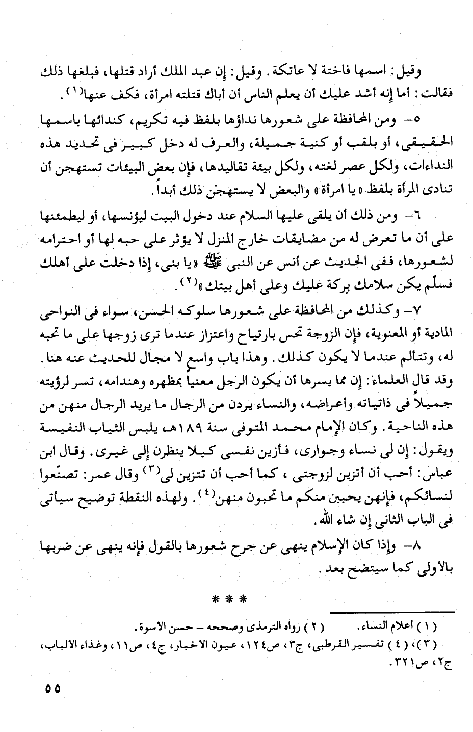 لنسائكم، فإنهن يحببن منكم ما تحبون منهن (4). ولهذه النقطة توضيح سيأتى