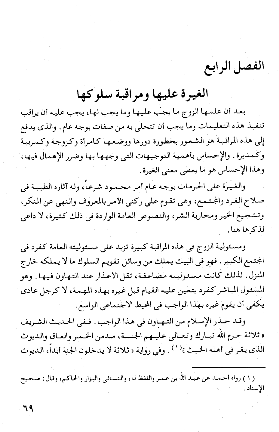 ومسئولية الزوج فى هذه المراقبة كبيرة تزيد على مسئوليته العامة كفرد فى