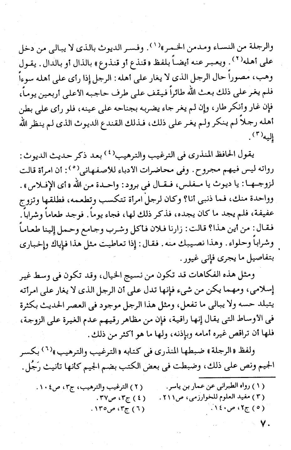 إسلامى، ومهما يكن من شىء فإنها تدل على أن الرجل الذى لا يغار على امرأته