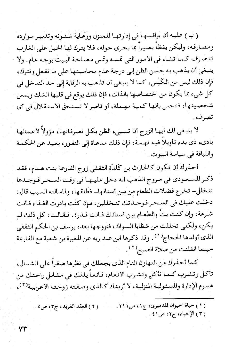 (ب) عليه أن يراقبها فى إدارتها للمنزل ورعاية شئونه وتدبير موارده