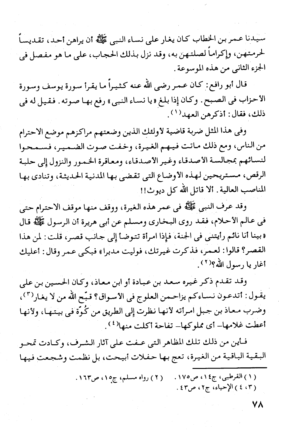 يقول: أتدعون نساءكم يزاحمن العلوج فى الأسواق؟ قبح الله من لا يغار (3)،