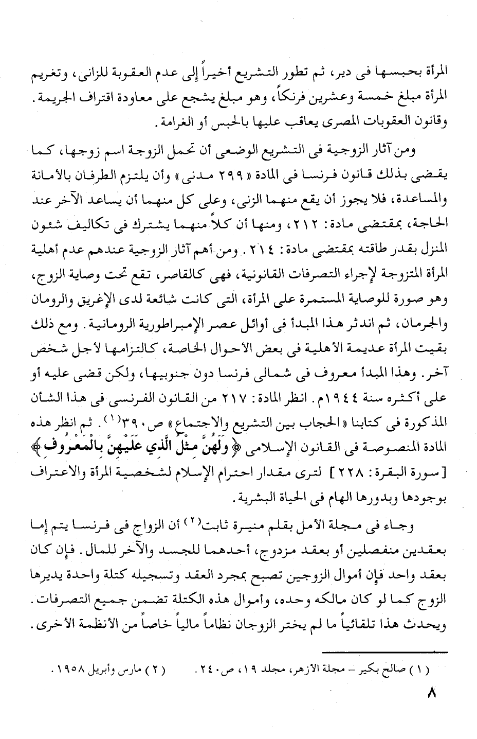 المذكورة فى كتابنا " الحجاب بين التشريع والاجتماع " ص 0 39 (1). ثم انظر هذه