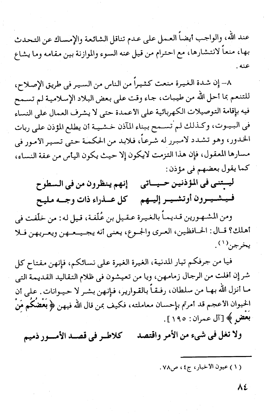 فيا من جرفكم تيار المدنية، الغيرة الغيرة على نسائكم، فإنهن مفتاح كل