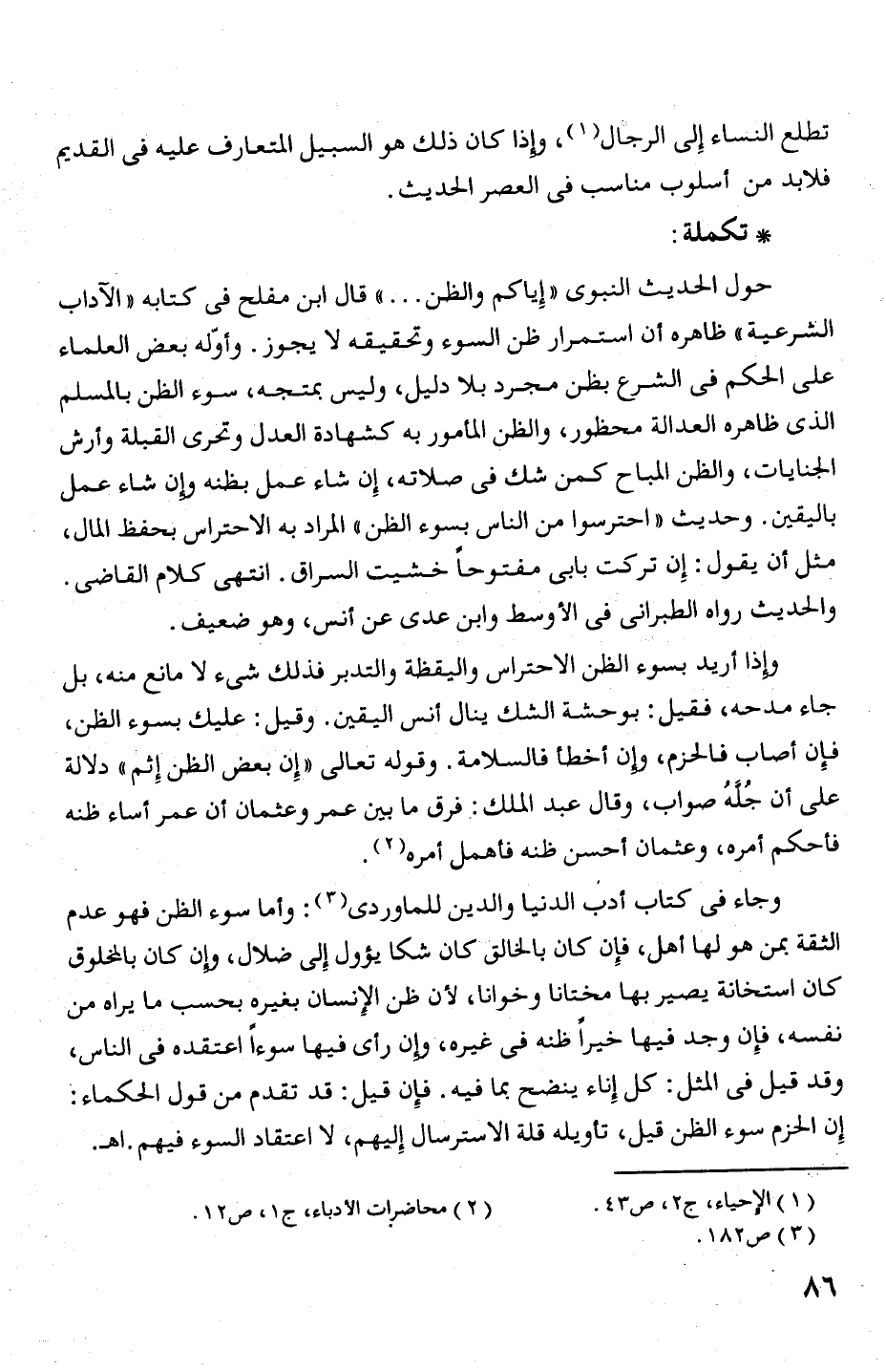 وجاء فى كتاب أدب الدنيا والدين للماوردى (3): وأما سوء الظن فهو عدم