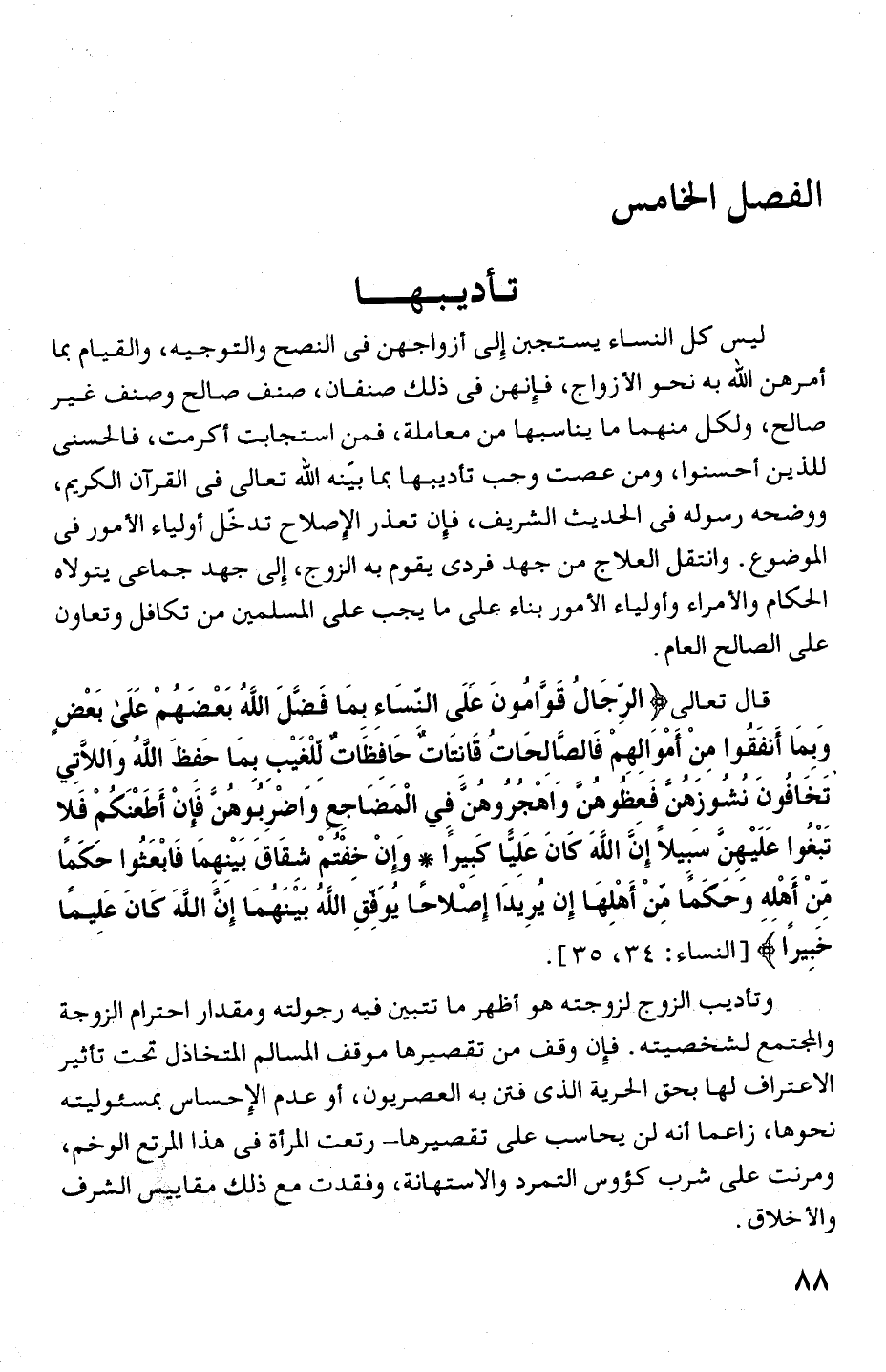 للذين أحسنوا، ومن عصت وجب تأديبها بما بينه الله تعالى فى المحرآن ا! ريم،