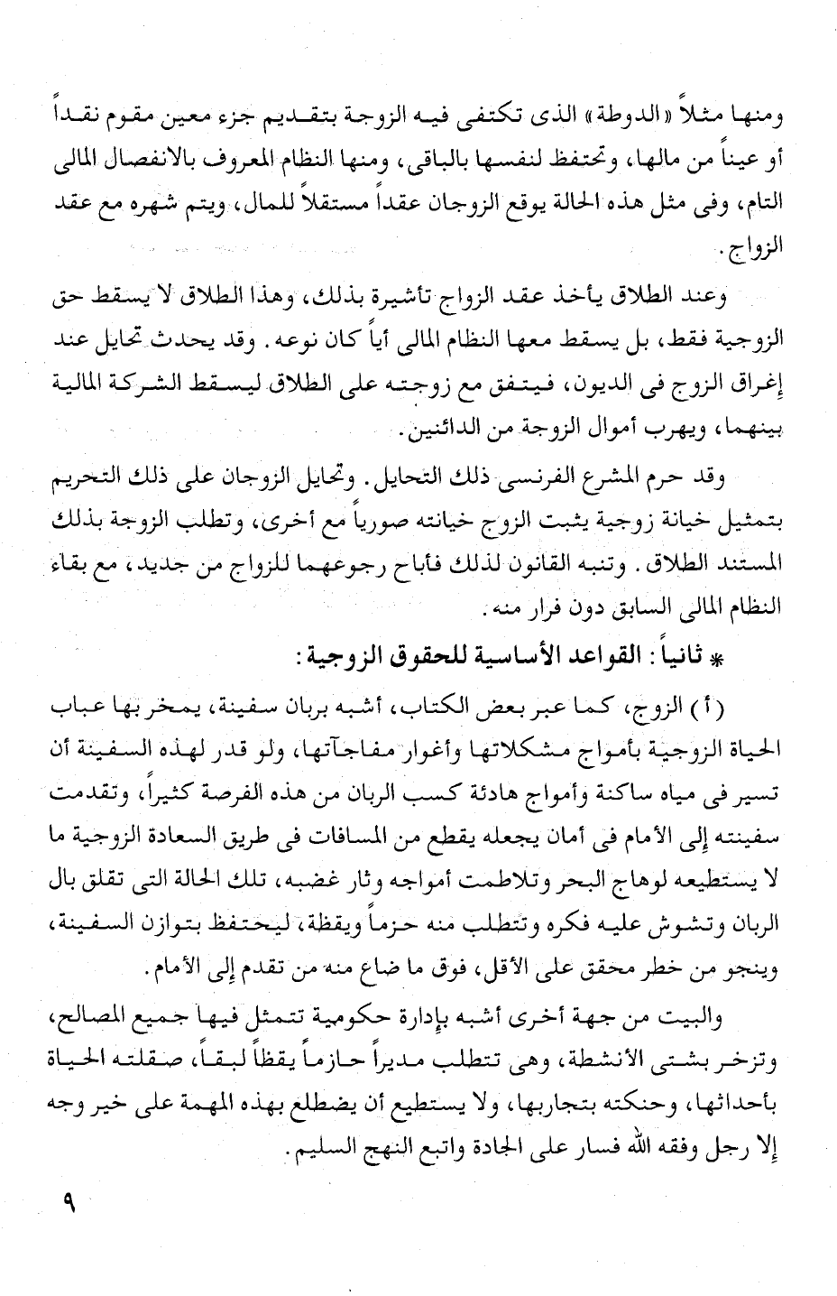 (أ) الزوج، كما عبر بعض الكتاب، أشبه بربان سفينة، يمخر بها عباب