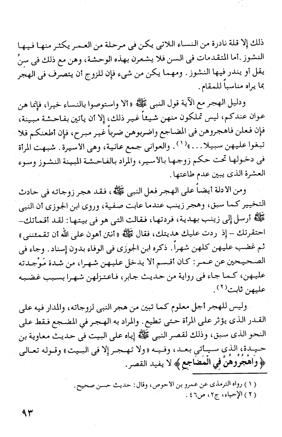 يقل أو يندر فيها النشوز. ومهما يكن من شىء فإن للزوج أن يتصرف فى الهجر