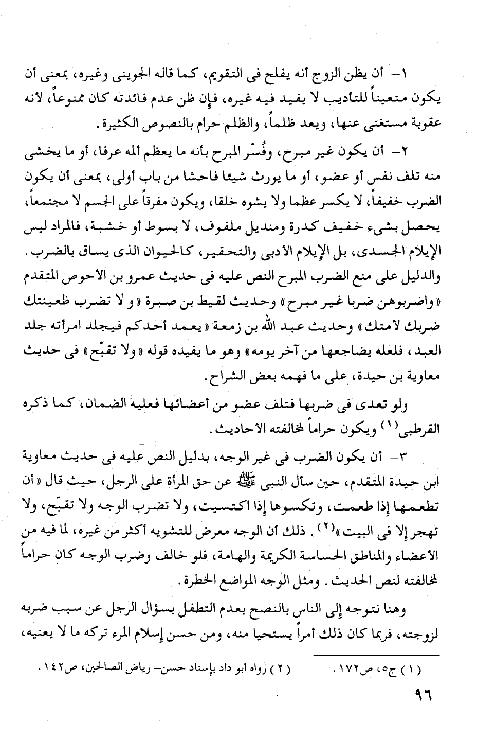 والدليل على منع الضرب المبرح النص عليه فى حديث عمرو بن الأ حوص المتقدم