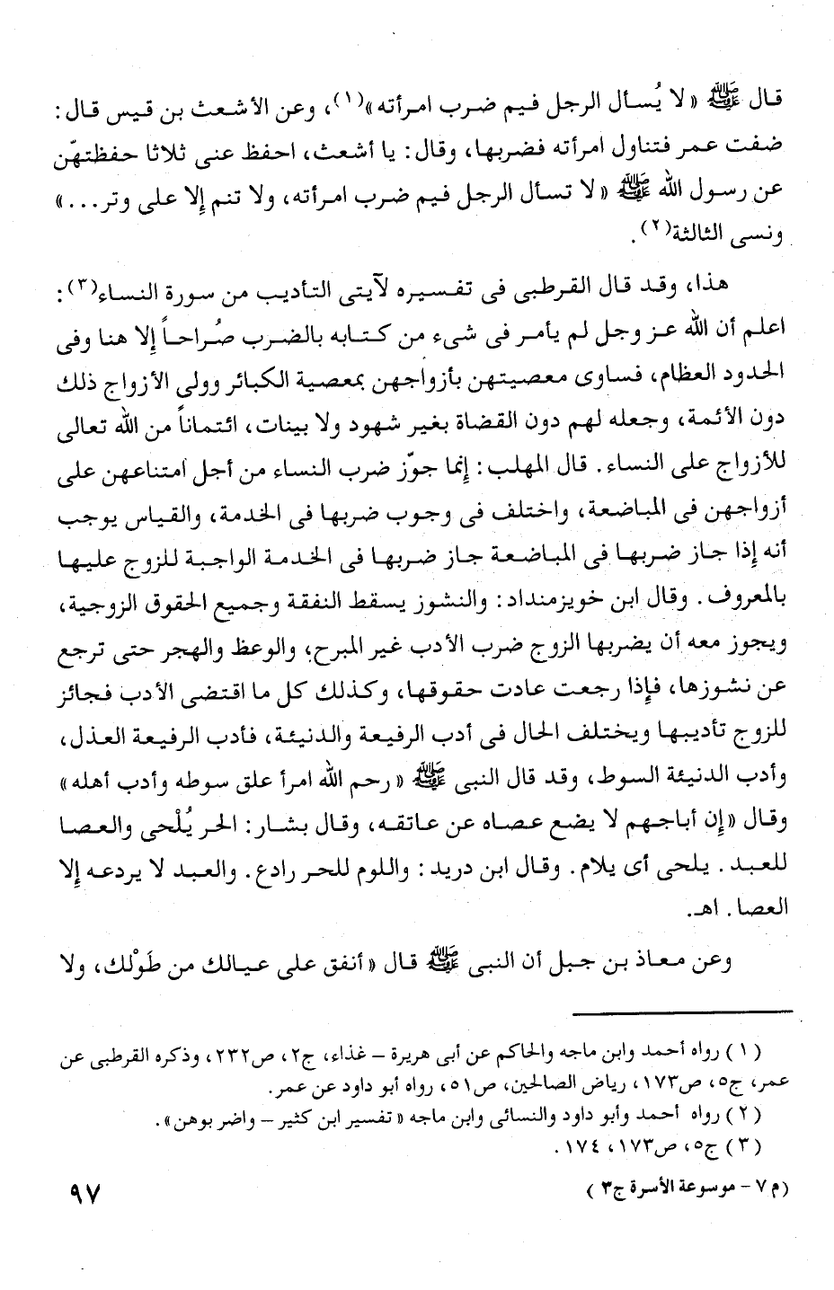 قال كلهط! (ا لا يسأل الرجل فيم ضرب امرأته " (ا لم، وعن الأ شعث بن قيس قال: