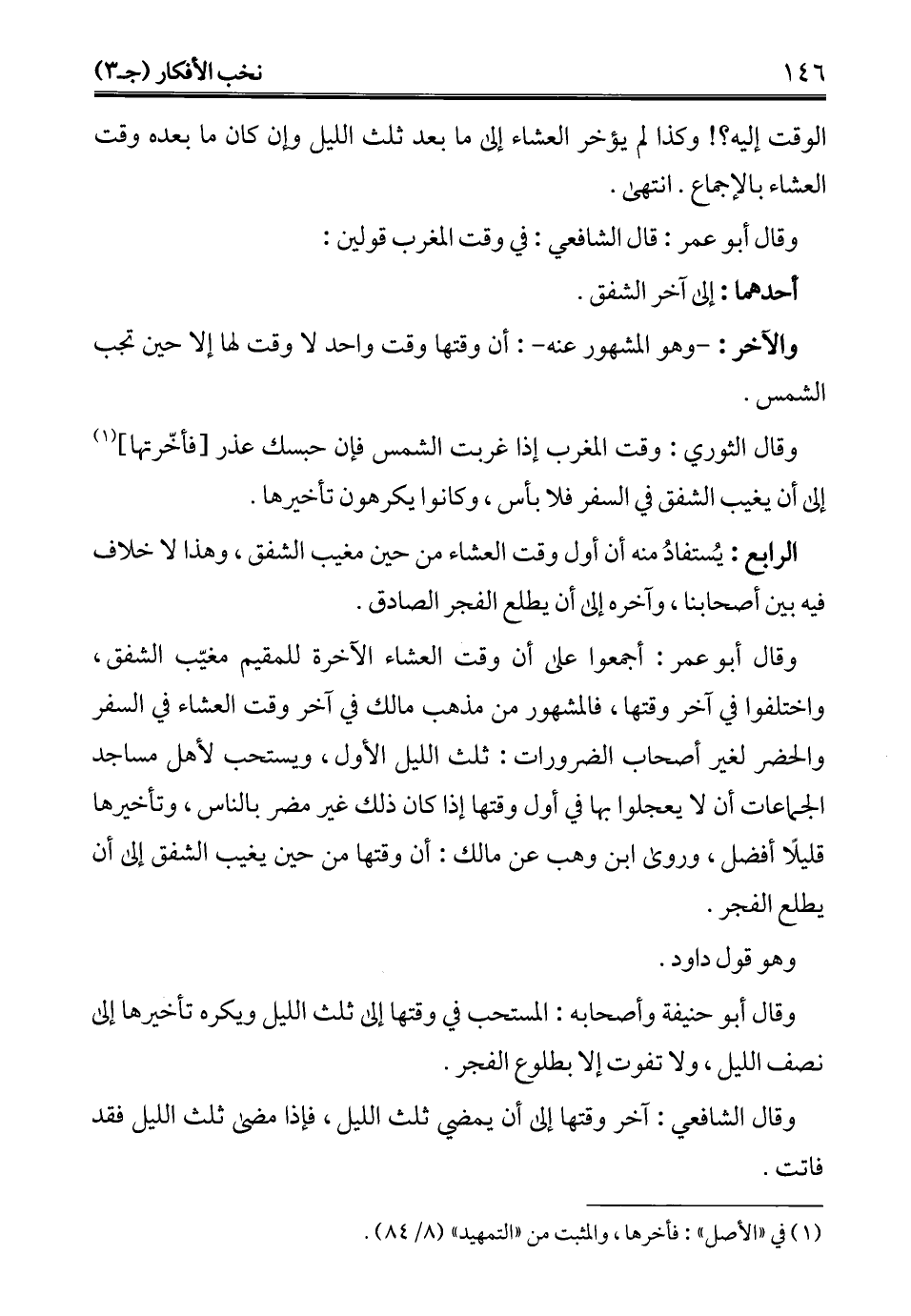 (¬1) في "الأصل": فأخرها، والمثبت من "التمهيد" (8/ 84).