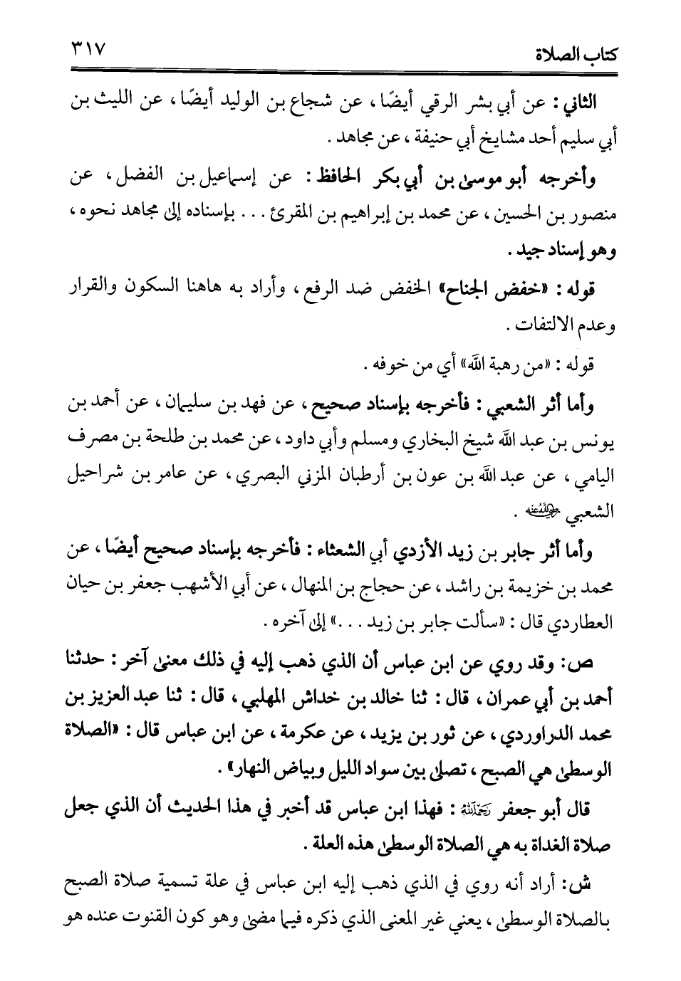 قال أبو جعفر -رحمه الله-: فهذا ابن عباس قد أخبر في هذا الحديث أن الذي جعل صلاة الغداة به هي الصلاة الوسطي هذه العلة.