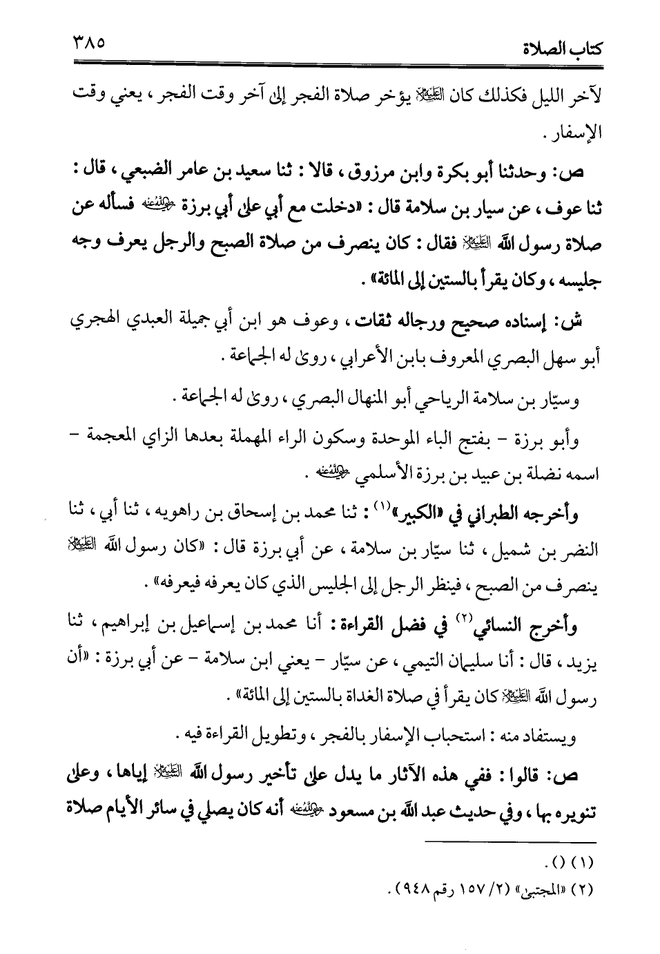 وأخرجه الطبراني في "الكبير" (¬1): ثنا محمد بن إسحاق بن راهويه، ثنا أبي، ثنا النضر بن شميل، ثنا سيّار بن سلامة، عن أبي برزة قال: "كان رسول الله - عليه السلام - ينصرف من الصبح، فينظر الرجل إلى الجليس الذي كان يعرفه فيعرفه".