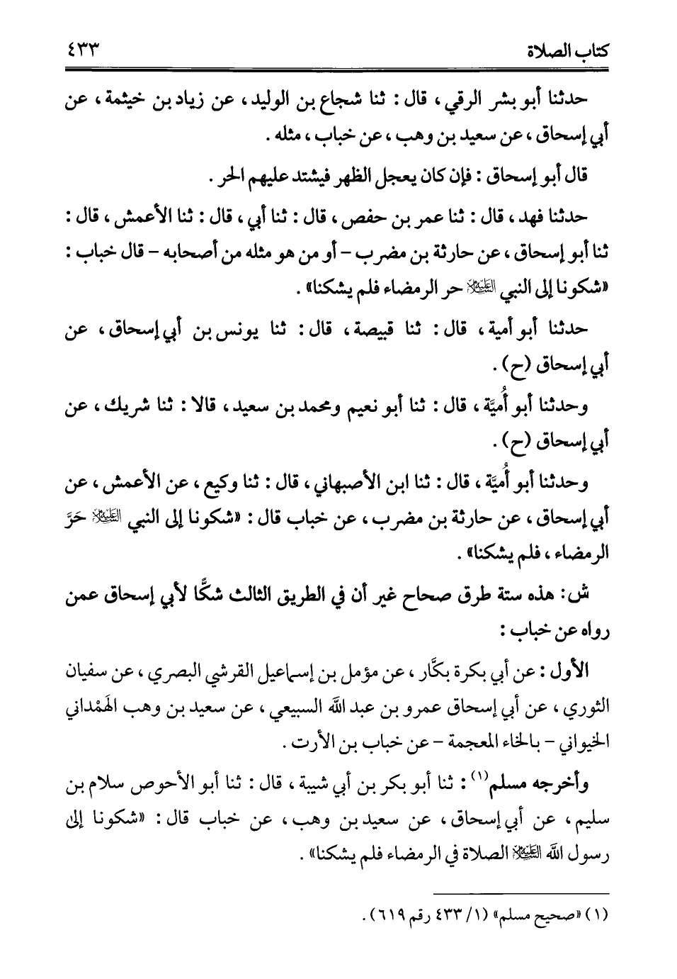 ش: هذه ستة طرق صحاح غير أن في الطريق الثالث شكًّا لأبي إسحاق عمن رواه عن خباب: